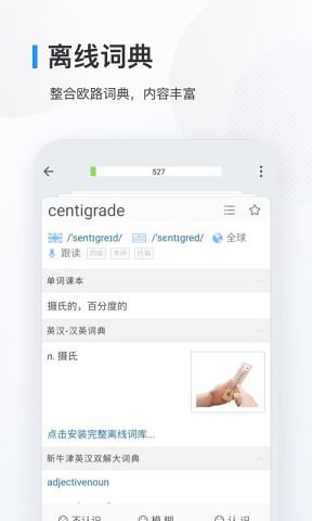 提供英汉-汉英、英英词典、近义词词典、词组及习惯用语词典等多维度解释。用户还可以一键查询剑桥、必应、韦氏、朗文等权威在线词典。释义内容详实准确,例句丰富,帮助用户全面掌握单词用法。