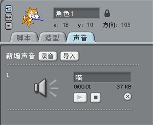 物件的声音可以透过麦克风来录音或汇入方式从档案汇入来使用(也可使用内键的音效档案)。声音编辑器支持基本的剪辑功能,如裁剪、淡入淡出和音量调节。特别有趣的是"声音特效"功能,可以将录制的声音变成机器人声、回声或快慢速播放,激发孩子们的创作灵感。系统还内置了简易的电子音乐合成器,可以创作简单的旋律。