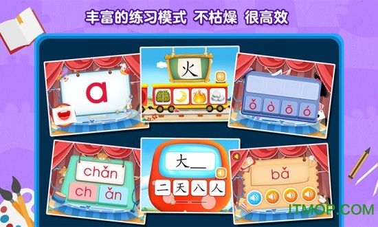 拼音:精心设计了9大类800余个拼音练习题目,采用独特的4步练习法,从声母、韵母到整体认读循序渐进,确保孩子能够扎实掌握拼音拼读技巧。