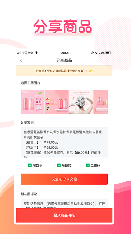 某东优惠券:独家获取平台隐藏优惠券,配合返利机制最高可省50%费用。优惠券专区:汇集天猫、淘宝等平台限量大额券,部分商品折上折优惠力度超双十一。超赚钱模式:由专业买手精选高佣金商品,用户购买后可获得商品价格50%以上的返利收益。9块9包邮区:严选日用百货等刚需商品,包邮基础上还能享受额外返利。智能分享系统:支持一键分享至微信、QQ等社交平台,邀请好友注册可获得双重奖励。商品分类板块:按母婴、数码等场景划分20+专区,智能推荐最匹配的优惠方案。通信服务:充话费享95折优惠,买流量包额外返现3%。每日爆款:早10点更新淘宝精选10款高返利商品,部分商品限时抢购。极速提现:1元即可提现,支付宝秒到账且0手续费。品牌特卖:联合1000+知名品牌开展专场促销,部分商品支持折后返利。