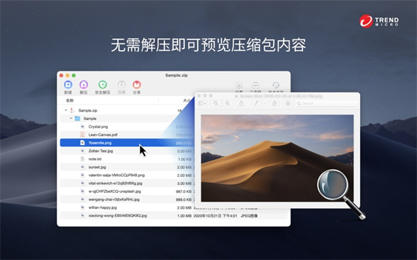 4、创新的预览技术让您无需解压就能直接查看文件内容,支持多种格式的即时预览。