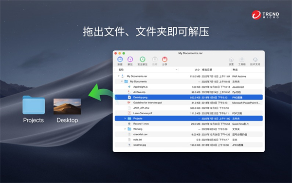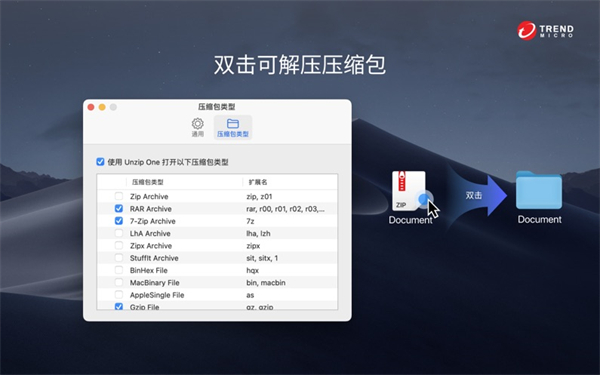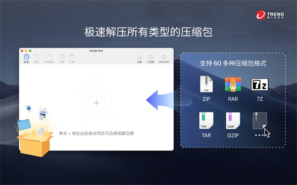 全能解压mac版全面兼容市场上主流的压缩格式,包括但不限于:RAR、7z、ZIP、XZ、BZIP2、GZIP、RAR、WIM、ARJ、CAB、CHM、CPIO、CramFS、DEB、DMG、FAT、HFS、ISO、LZH、LZMA、MBR、MSI、NSIS、NTFS、RPM、SquashFS、UDF、VHD、WIM、XAR和Z等30多种格式,满足用户各种解压缩需求。