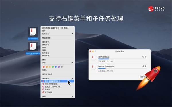 2、智能解压功能可将归档文件解压到您指定的任何位置或文件夹,支持批量操作。