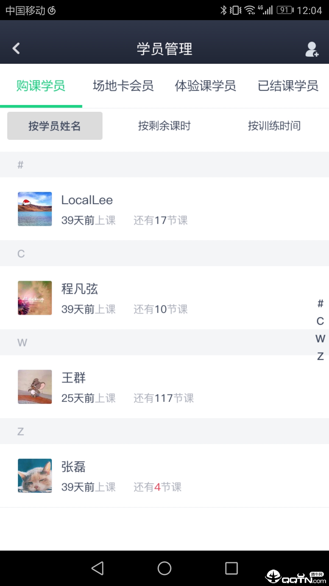 3.课程分析页面加入学员姓名显示,方便教练快速识别学员;