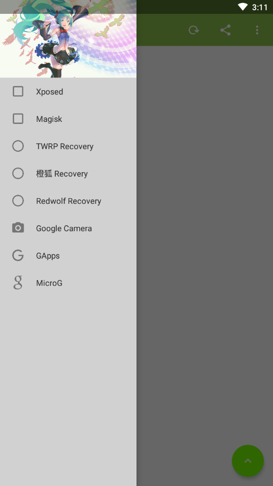 Xposed、Magisk、Recovery、橙狐Recovery、RedwolfRecovery、GoogleCamera、GApps、MicroG