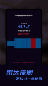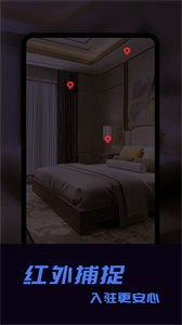 奇趣酒店防偷窥探测器app是一款专为旅行者和注重隐私的用户设计的智能安全工具,能够高效检测酒店房间内的隐藏摄像头。通过结合先进的图像识别算法和人工智能技术,该应用可快速扫描环境中的可疑设备,包括针孔摄像头、无线网络摄像头等各类偷拍装置。操作简单直观,用户只需启动扫描功能,应用便会实时分析周围环境,一旦发现潜在威胁立即通过声音和视觉提示发出警报,为用户提供全方位的隐私保护。