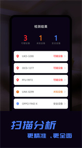 2、AI智能识别引擎可以自动分析摄像头品牌型号,并在地图上标注可疑设备位置。系统会记录检测历史,帮助用户建立个人安全档案。