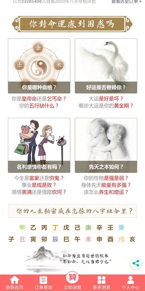 占卜一生财运多寡,教你找对工作、精明赚钱理财投资,轻松成为人生赢家;独家财富指数评估系统,结合命理与经济学原理,为用户量身定制财富增长方案。