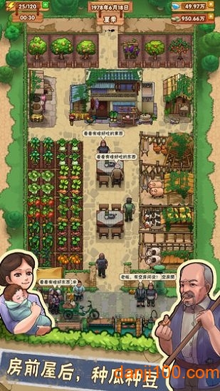 这是一款感人至深的模拟经营游戏,通过一个普通农家小院的故事,唤起每个人心中最美好的童年记忆。游戏背景设定在40多年前的一个宁静乡村,小院依山傍水,门前流淌着清澈的小河,屋后是郁郁葱葱的山林。院子里有一亩三分地,住着一对勤劳朴实的年轻夫妇,他们过着自给自足的生活,虽然不富裕却充满幸福。随着女儿的降生,这个小院的生活变得更加丰富多彩。父亲负责耕种劳作,母亲在厨房准备可口的饭菜,女儿则在院子里快乐玩耍,小猫小狗陪伴左右,构成了一幅温馨和谐的家庭画卷。