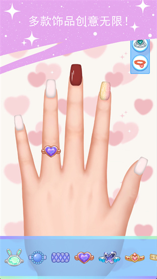 操作极其简便直观,只需点击选择需要的道具和素材,就能轻松将它们组合在一起,完成令人惊艳的美甲作品。