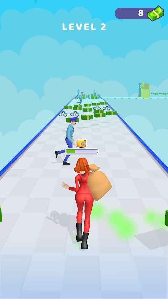 《抢了就跑》是一款充满趣味与挑战的休闲跑酷手游,玩家将扮演一名敏捷的冒险者,穿越充满障碍的跑道,收集沿途散落的钞票。游戏采用清新可爱的画风,搭配丰富的关卡设计和多样化的道具系统,让每一次奔跑都充满惊喜。通过收集金币,玩家可以解锁炫酷的皮肤和强力道具,提升闯关效率。无论是单人挑战还是多人竞技,都能带来轻松愉快的游戏体验,随时随地享受指尖上的速度与激情。