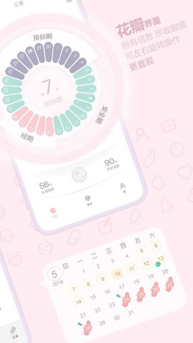 优化了经期日历花瓣的色彩,整体色彩更加小清新,新增渐变色效果