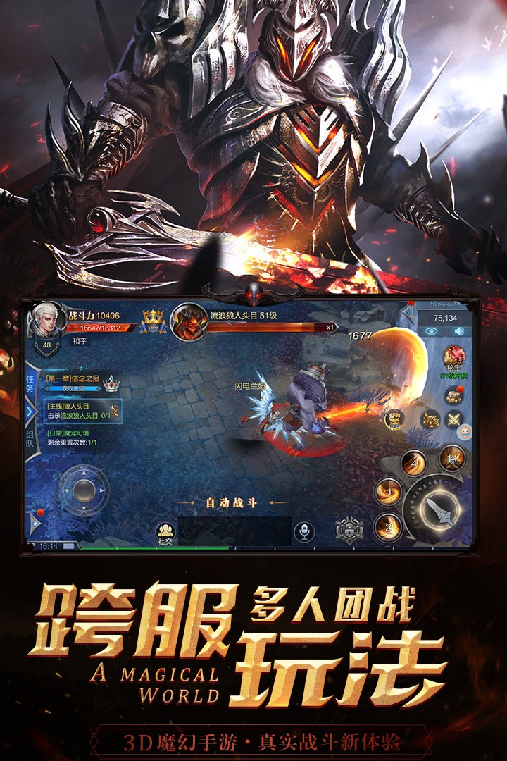 2、广视角,大世界。360度全视角游戏体验。游戏采用先进的物理引擎,实现了真实的昼夜交替和天气变化系统。玩家可以自由调整视角,近距离欣赏角色装备的每一个细节,或是拉远镜头俯瞰壮丽的魔幻大陆。