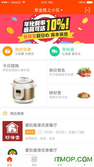 2、核心功能包括包裹代收代寄、小区拼团购物、二手物品交易等社区服务;
