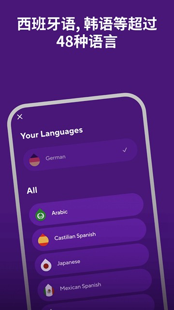 初次进入软件时,系统会引导您选择目标语言和当前水平。建议根据实际情况如实填写,系统会根据您的选择智能调整学习难度和进度。