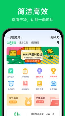1)拥有海量的学习题库资源,涵盖不同专业的考试内容,满足用户的多样学习需求。题库内容由专业教研团队根据最新考试大纲编写,包含基础题、高频考点题和压轴难题三个层级,每道题目均配有视频解析和考点延伸,用户可通过"收藏夹"功能建立专属错题本,实现针对性强化训练。