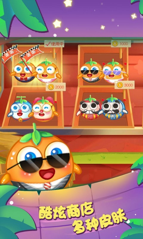 1、化妆间。在全新的化妆间中可以定制橘子的造型,还能将您的设计与朋友们分享。这里提供了数十种装饰配件,从可爱的帽子到搞怪的眼镜,让每个橘子都能展现独特个性。玩家还可以通过完成特定关卡解锁稀有装饰,打造专属于你的橘子形象。