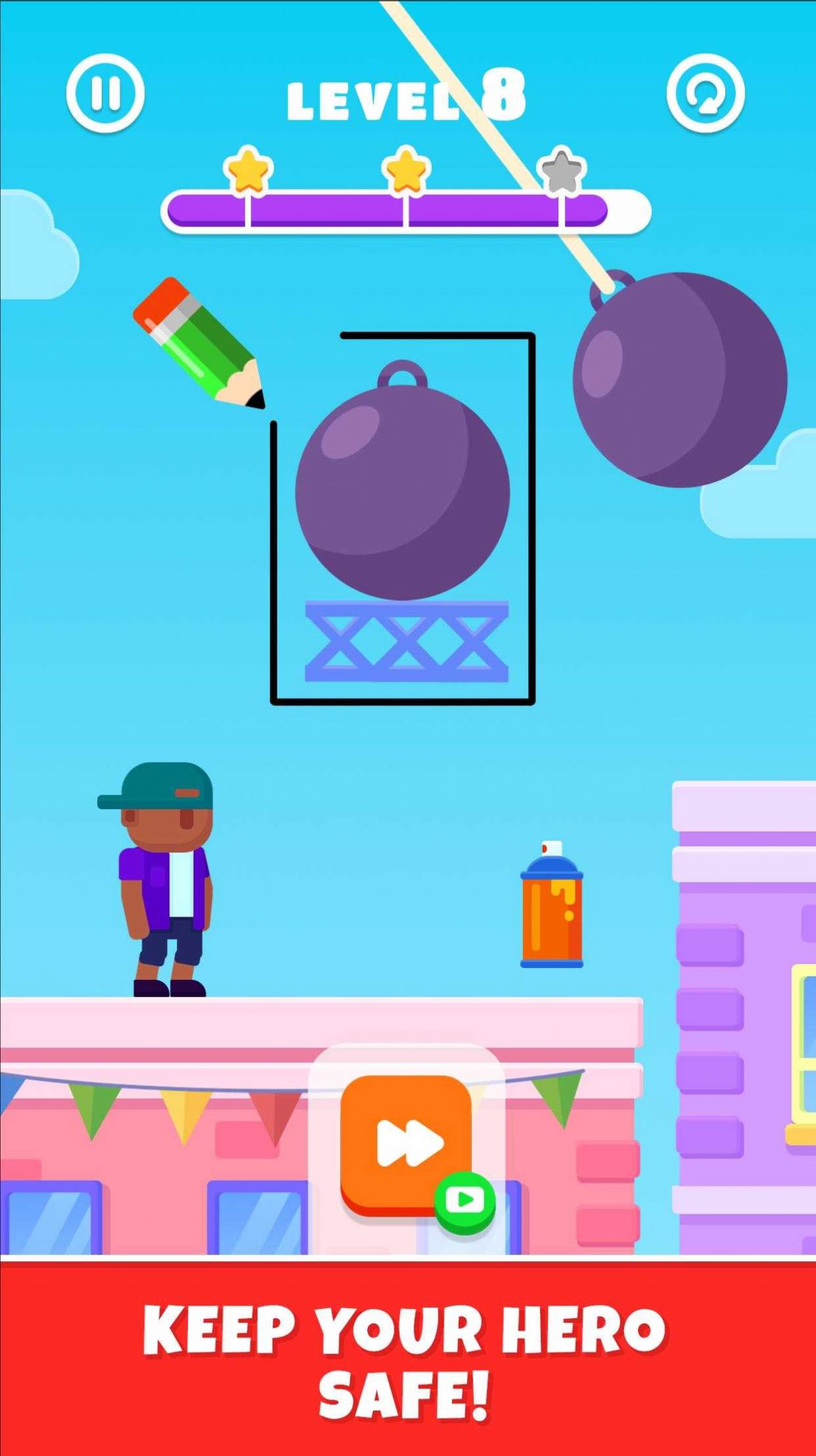 1、发挥自己的智慧,绘画解开各种的谜题,顺利的解救出英雄。游戏中的每个谜题都经过精心设计,需要玩家运用空间想象力和逻辑推理能力才能找到正确的路径。