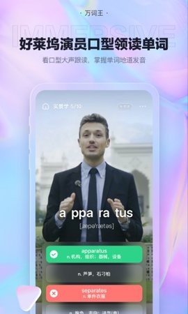 3、用户可以使用万词王随时随地学习,不受时间和空间的限制,提高学习效率,并通过视频让用户在真实的情境中学习。应用支持离线下载功能,用户可以在没有网络的情况下继续学习。视频学习内容涵盖日常生活、商务、旅游等多个场景,让学习更加生动有趣。