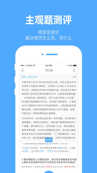 专为司法考试备考打造的安卓刷题神器重磅上线!这款软件汇聚了海量优质题库资源,全面收录2002-2017年司法考试真题,通过智能测评系统精准定位知识盲区。无论是系统复习还是考前冲刺,都能为您提供个性化学习方案。独创的三大测评模式可满足不同阶段学习需求,配套的错题本和专项练习功能让复习事半功倍。所有解析均根据最新法律法规实时更新,确保学习内容的准确性和时效性。更有活跃的备考社区支持真题讨论,是您备战司考的得力助手。