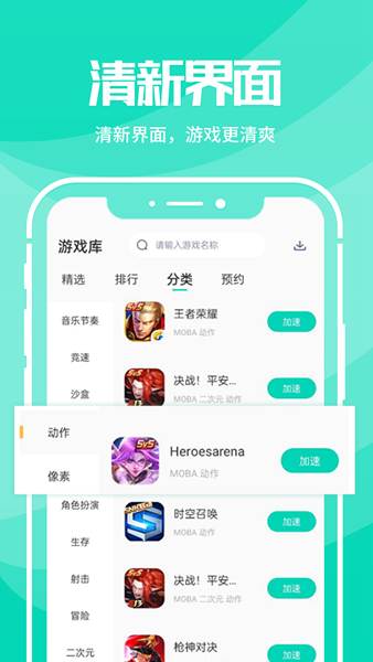 1、打开野豹游戏加速器手机客户端,进入内置的游戏资源库页面;
