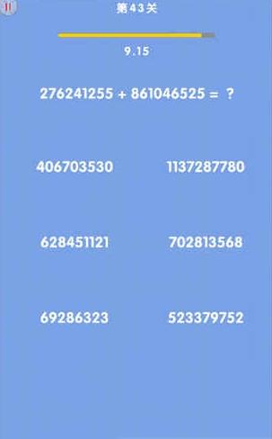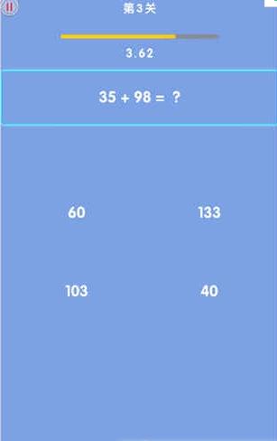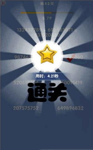 1、游戏以算术竞技为核心玩法,每关会随机生成数学题目,玩家需要在倒计时结束前提交正确答案。随着等级提升,题目复杂度会显著增加,包括多位数运算和括号优先级的判断;