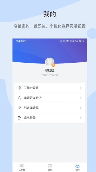 店铺邀约功能一键直达目标客户,同时提供丰富的个性化设置选项,让您根据自身需求灵活调整应用界面和功能模块,打造专属的经营工具。