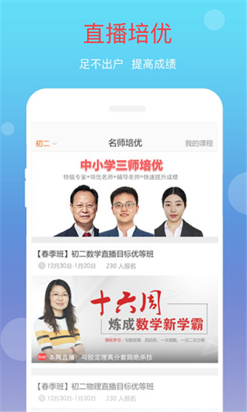 3、名师辅导:软件特别邀请了来自全国重点学校的特级教师和学科带头人,为学生提供预约制的一对一辅导服务。学生可以根据自己的学习需求,选择合适的时间段与名师进行深入交流,获得专业的学习指导和个性化建议。