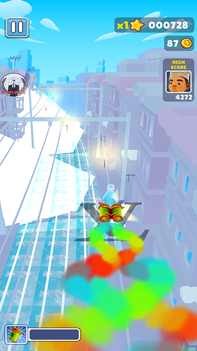 游戏中的主角会自动奔跑,玩家需要通过操作屏幕来控制主角的跳跃、翻滚、滑行等动作,闪避障碍物和陷阱。灵活的操作是成功的关键,玩家需要根据障碍物的类型和位置,快速做出反应。跳跃可以越过栏杆和箱子,滑行则可以躲过低矮的障碍物。