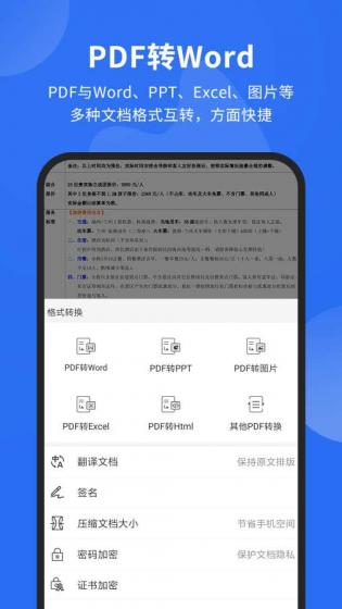 福昕PDF阅读器支持多种常见文档格式的浏览,包括Word、Excel、PPT、TXT、Docx等办公文档以及各类图片文件。软件具有出色的兼容性,能够完美打开Adobe PDF、17 PDF Reader等主流PDF阅读器创建的文档。智能文本重排功能可根据屏幕尺寸自动优化显示效果,显著提升移动设备上的阅读体验。用户还可以根据需要调整页面布局,实现个性化的阅读设置。