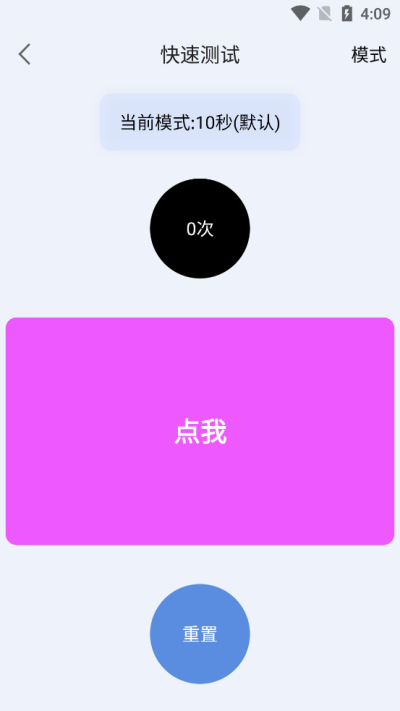 以快速点击为例,进入测试界面后,右上角的"模式"选项允许用户自定义测试时长,从10秒到60秒不等,满足不同场景的测试需求。