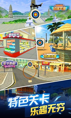 奔跑吧神箭手正式版是一款由热门综艺《奔跑吧》正版授权打造的休闲射箭手游。游戏完美还原了节目中的欢乐氛围,玩家将化身神箭手,与跑男团成员一同展开环球射箭冒险。从大理古城到热带海滩,从繁华都市到趣味超市,多样化的场景带来沉浸式体验。游戏采用轻松易上手的操作方式,只需简单点击即可享受射箭乐趣,同时支持实时PVP对战,让你与全球玩家同台竞技。无论是单人闯关还是多人对战,都能感受到节目同款的欢乐与刺激!