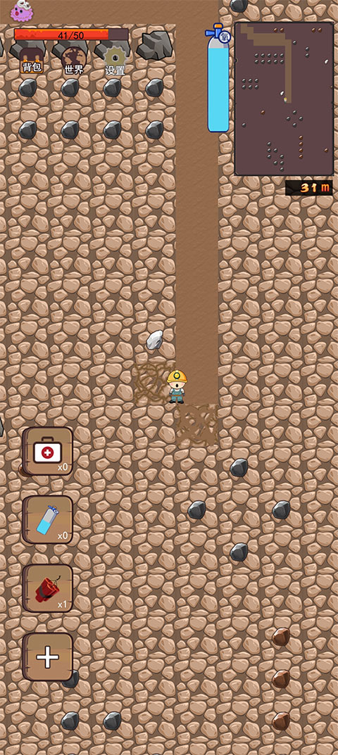 角色控制:点击屏幕控制角色移动和挖掘。