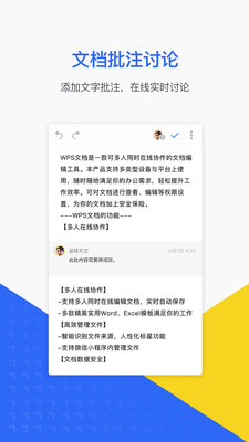 WPS文档是一款功能强大的在线文档协作工具,致力于为用户提供安全、高效的办公体验。它支持多人实时协作编辑,修改内容自动保存,彻底解决了传统文档反复传输的痛点。通过云端同步功能,用户可以在任何设备上访问和编辑文档,实现真正的移动办公自由。无论是个人创作还是团队协作,WPS文档都能提供智能的文件管理和便捷的批注讨论功能,让文档处理变得更加轻松高效。