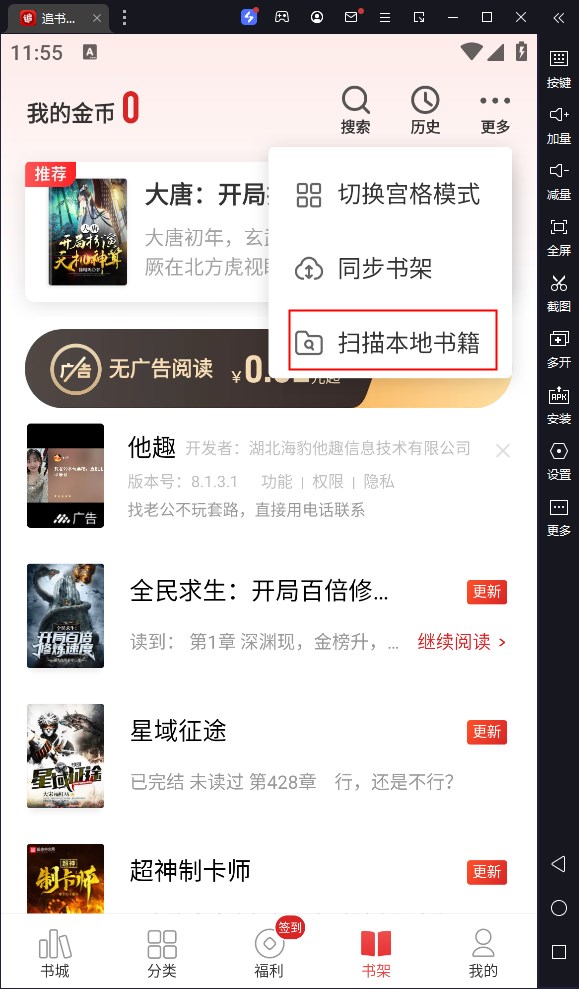 等待扫描完成后选择需要添加的书籍,并点击导入管理;