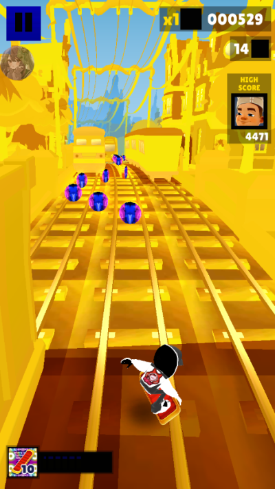 玩家需要控制游戏角色在地铁轨道上跑酷,闯过一系列障碍物、收集各种道具,尽可能地向前奔跑。随着游戏进程的推进,难度会逐渐增加,让玩家始终保持新鲜感。