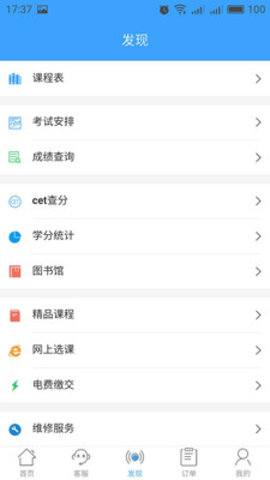 发现:提供校园内的课程安排、考试安排、考试成绩查询、网上选课等功能,让学生及时了解学校课程学习进度,考试成绩是否通过。并且能够在线上课,不会错过自己感兴趣的课程。同时,发现板块还支持个性化课程推荐,帮助学生规划学习路径。