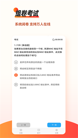 用手机就能制作试卷:时间紧张不再是问题!APP内置强大的试卷编辑器,让你充分利用碎片时间轻松制作和编辑试卷。更贴心的是,手机创建的试卷可以无缝同步到电脑端,满足不同场景下的编辑需求,让备考更加灵活高效。2、多种刷题模式:提供顺序练习、随机练习、模拟考试等多种免费刷题模式,满足不同学习阶段的备考需求。你可以收藏重点题目、反复练习错题、添加学习笔记,系统会自动记录你的答题正确率,智能分析薄弱环节,帮助你有针对性地提升。3、轻松制作试卷:想要创建个性化试卷?操作简单快捷!支持通过word、excel等常见办公软件整理试题,一键导入平台即可生成试卷。全面支持单选题、多选题、判断题、组合题、简答题、填空题等各种题型,满足不同考试类型的组卷需求。