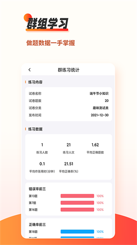 注册后即可无限制添加学习内容,题库容量随心扩展,让你尽情享受学习的乐趣。2、支持多种题型自由组合试卷,操作界面简洁直观,三步即可完成组卷,省去繁琐流程。3、在线学习响应迅速,智能分析学习数据,薄弱环节一目了然,帮助你有针对性地查缺补漏。4、创建专属试卷集合功能,系统化整理知识点,通过反复练习巩固记忆,构建完整知识体系。