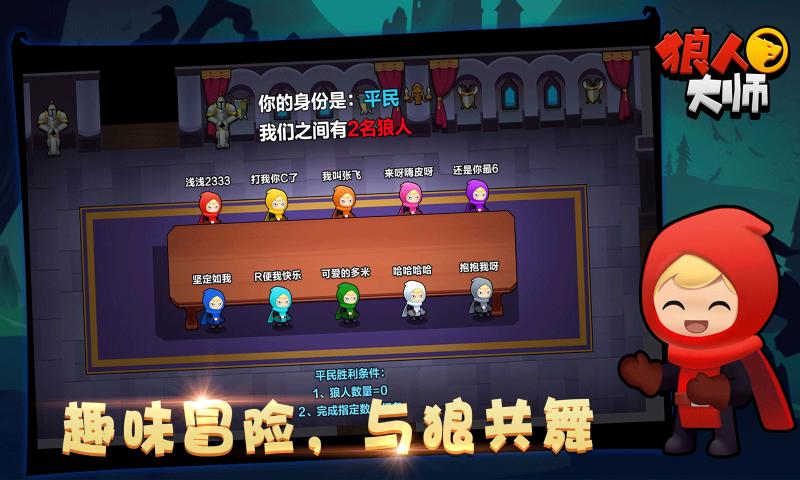 游戏支持4-10人同时参与,分为平民和狼人两大阵营。人数越多,游戏越复杂刺激,每个阵营都有独特的获胜策略;