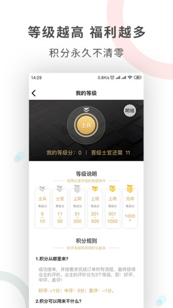 【保证金】制度采用弹性设计,新手师傅可选择性缴纳以提高接单权重,老用户则根据信用等级享受保证金减免。缴纳保证金的师傅可获得VIP标识,订单匹配优先级提升20%,接单机会显著增加。