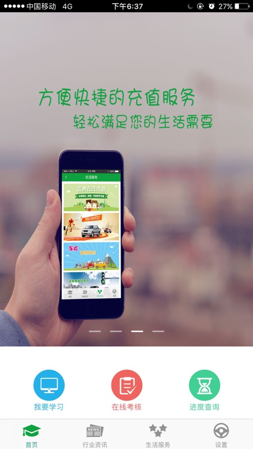 3)软件首页采用模块化设计,包含我要学习、在线考核、进度查询、行业资讯和生活服务五大核心功能区域。每个模块都经过精心优化,确保用户能够快速找到所需功能,提升使用体验。
