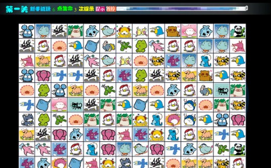 基本规则:游戏开始后,玩家会看到一个由多个宠物图案组成的棋盘,每个图案成对出现。玩家需要通过点击两个相同的图案,如果它们之间可以用不超过两条直线连接(路径不能穿过其他图案),则这对图案会被消除。目标是在规定时间内消除所有图案。