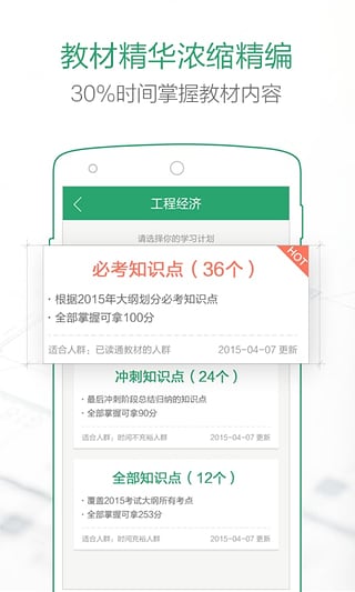 教材精编:根据2015最新教材,内容浓缩至30%,最少时间掌握所有重点!专业教研团队对教材内容进行深度提炼,去除冗余信息,保留核心知识点,让考生在有限时间内高效掌握考试要点。这种科学的精简方式可节省70%的学习时间,大幅提升备考效率。
