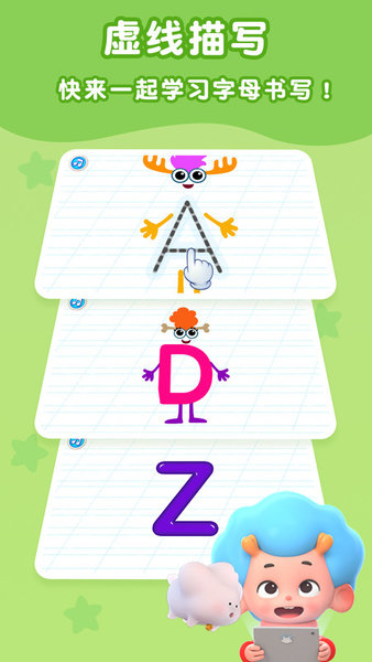 字母学识启蒙是一款专为3-8岁儿童设计的英语启蒙教育软件。软件采用生动有趣的卡通风格,通过色彩鲜艳的画面和可爱的角色形象,有效吸引孩子的注意力。它以游戏化学习为核心,将英语字母学习融入趣味互动中,让孩子在轻松愉快的氛围中培养英语兴趣。研究表明,兴趣是最好的老师,这款软件正是通过寓教于乐的方式,帮助孩子在英语学习的起跑线上获得优势,为未来的语言学习打下坚实基础。