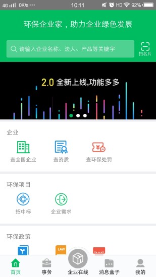 本次推出的环保企业家V2.0.0版本进行了全面升级优化。新版本在原有功能基础上增加了智能推荐算法,可根据企业需求精准匹配服务资源;优化了用户界面设计,操作更加直观便捷;同时强化了数据安全保障措施,确保企业信息安全。此外,平台还新增了在线培训模块,为企业员工提供环保政策法规、技术标准等专业培训资源,助力企业提升环保管理水平。