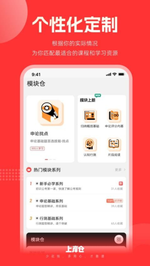 1、丰富的优质课程库是上岸仓的核心优势,汇聚了各领域名师录制的精品课程。课程内容涵盖行测、申论、面试等公考全科目,并持续更新最新考纲内容,确保用户获取最前沿的备考资料。
