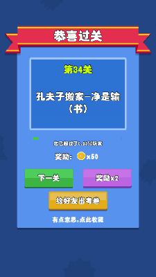 【观察细节】注意图片中的每一个元素,可能隐藏关键线索,比如颜色、形状或文字组合。 【拆解字形】遇到复杂成语时,尝试将汉字拆分成偏旁或部首,可能更容易联想到答案。 【联想谐音】部分关卡会利用谐音梗,听到或看到提示时,多思考发音相近的成语。 【利用道具】游戏内提供的提示道具很实用,初期可合理使用,避免卡关影响体验。 【积累词汇】平时多阅读成语故事或词典,扩大知识面,遇到生僻词时更易破解。 【分享求助】遇到难题时,可以截图分享给朋友,集思广益往往能快速找到答案。