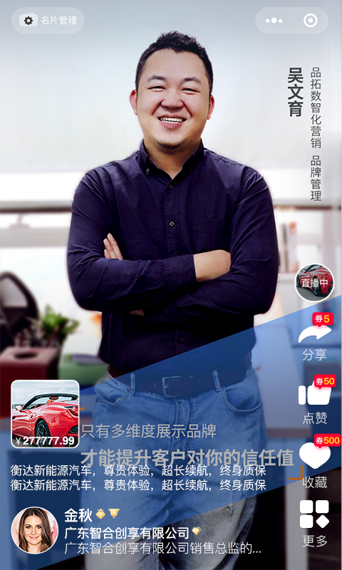 【品牌展示系统】全方位展示企业或个人品牌形象,通过视频名片、企业微官网、商品展示等多样化形式,让潜在客户更直观地了解您的品牌价值。系统支持动态更新企业资讯,打造专业且富有吸引力的品牌形象展示平台。