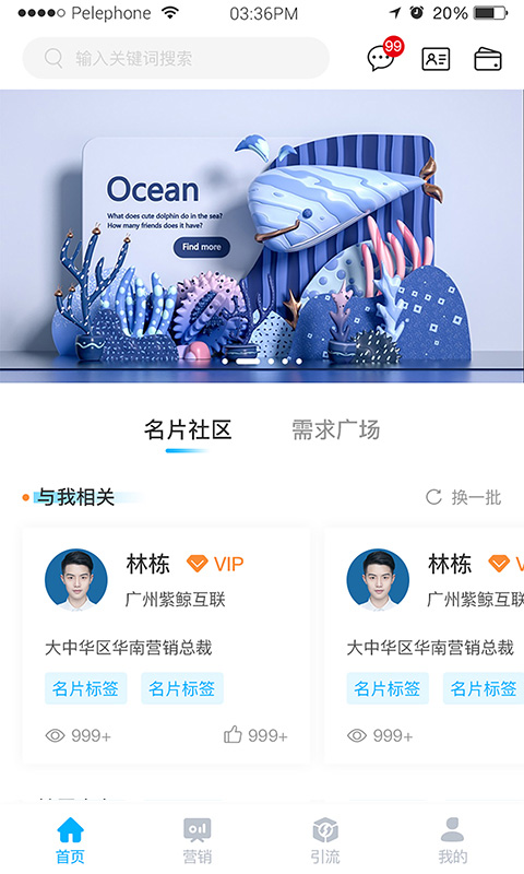 【Ai智能匹配人脉】利用AI技术精准匹配商业人脉,提供"与我相关"、"附近名片"等智能筛选功能。系统还会定期推荐行业大咖和新入驻的优质人脉,帮助用户持续拓展有价值的商业关系网络。